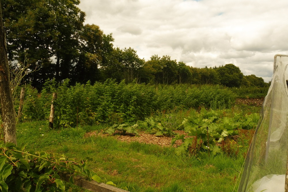 Tout doucement, à l’automne 2020, les Framboisiers ont occupé une bonne partie du champ à côté de chez nous, puis les Groseillers, les Cassis, les Fraisiers, les Muriers et les Rhubarbes. Ils sont bordés par des talus de grands Châtaigniers, de Sureaux, d’Aubépines, de Pruneliers, de Lilas et de Noisetiers. Nous avons comblé les « trous » dans les haies et recréé des talus en plantant des Pommiers, Poiriers, Pêchers, Pruniers et Cognassiers.