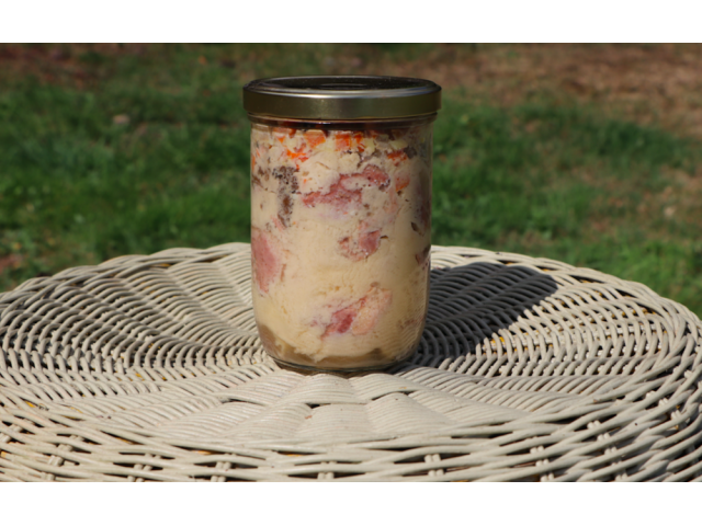 Sauce: Bouillon*, chanterelles*, crème fraiche*, carottes*, oignons*, beurre*, farine de blé*, sel de Guérande, poivre noir*, thym*, laurier*.